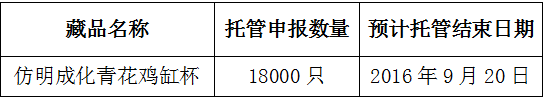 應(yīng)發(fā)行會(huì)員申請(qǐng),經(jīng)景德鎮(zhèn)陶瓷交易所有限公司(以下簡(jiǎn)稱(chēng)本交易所)研究決定,下列藏品進(jìn)入托管流程。本交易所將對(duì)申請(qǐng)入市藏品統(tǒng)一組織相關(guān)專(zhuān)業(yè)鑒定,具體事項(xiàng)如下: